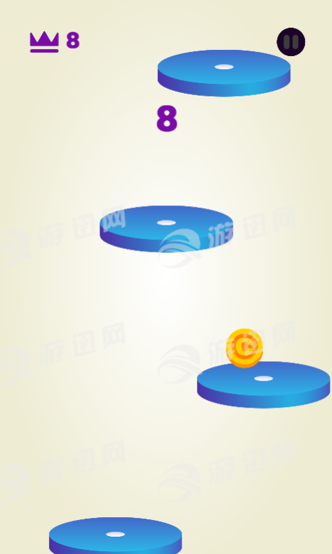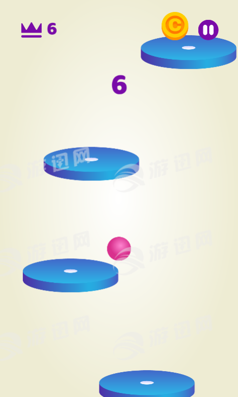 左右滑动控制球,跳的速度会慢慢增长,平台也会渐渐变小,吃到光柱可以扩充平台宽度,吃到彩色光效可以增加每层的分数...一段距离后还会出现向上的箭头,吃了可以猛冲一段,那个很爽~节奏感控制的不错
