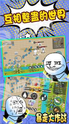 暴走大作战求生大作战是一款有趣好玩的休闲游戏,游戏以魔性的表情以及独特的玩法给玩家留下了深刻的印象,游戏之中的竞技非常独特,玩家还可以在这里体验到当装逼王的乐趣,喜欢的玩家千万不要错过哦。