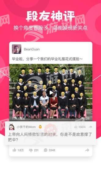 段友tv是一款全新上线的娱乐段子软件,是百万段友的新归处,这里集聚了众多的幽默搞笑段子,众多热门小视频,每日更新,第一时间享受欢乐,一键分享,趣味无穷!