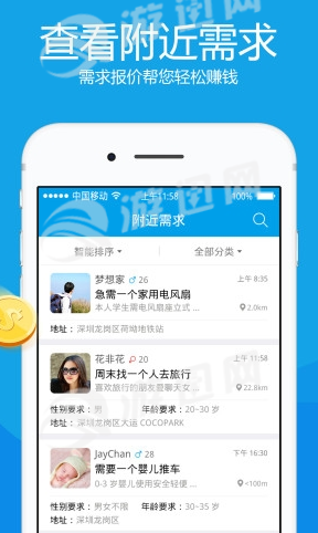 3.查看附近需求,可以对相应需求发布报价提供服务来;