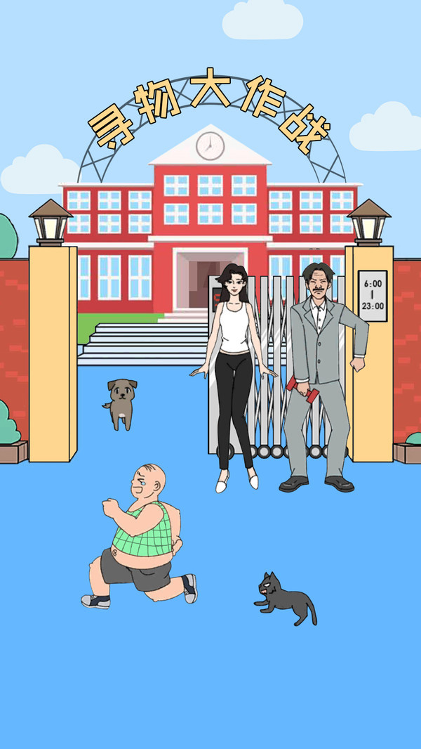 寻物大作战是一款创意慢慢,趣味性极高的休闲益智类游戏,在游戏中你将会榜样一名学生,在学校中寻找各种有趣的事物,钓鱼竿,笼子等等,但是你一定要注意,千万不要被保安抓住,或者是被学校中的看门狗,跟上,否者你的下场会非常的惨,《寻物大作战》的游戏玩法非常的特别,游戏的画面也是异常的简约大方,玩家的游戏体验非常好。