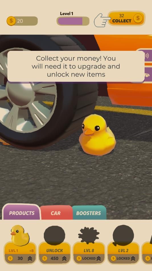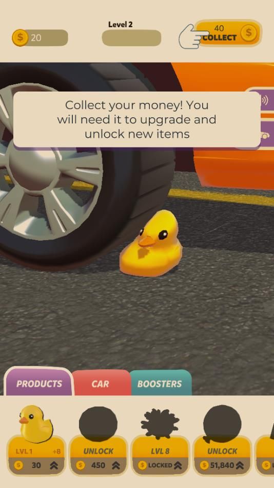 通过控制汽车将场景中提供的道具进行碾压,完成通关任务;控制汽车行驶速度,将道具放置轮胎下完成任务获得金币加持;游戏操作简单可玩性很强,独特的冒险关卡让游戏充满趣味。