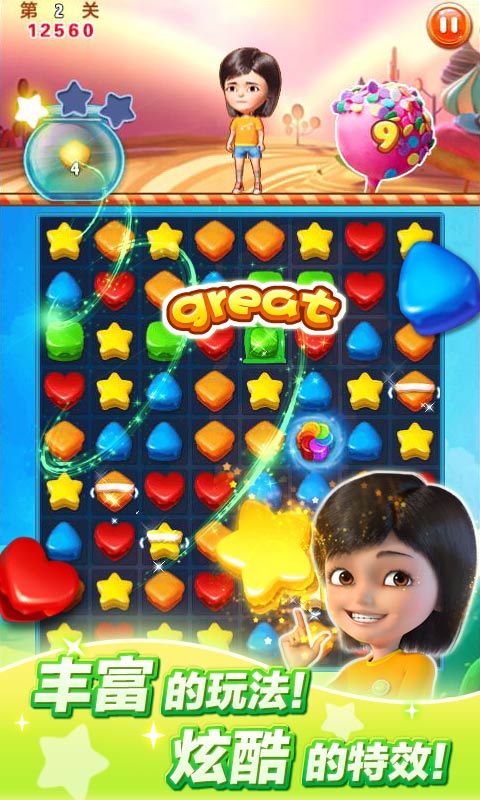 糖果世界大冒险玩转糖果世界大战!赶快来进入冒险的惊奇旅程,挑战三星星高分吧!这里有绚丽多彩的糖果,超多好玩的关卡,考你智力,让你越玩越上瘾,越玩越精彩,让小雨带你进入糖果世界开心冒险乐不停!