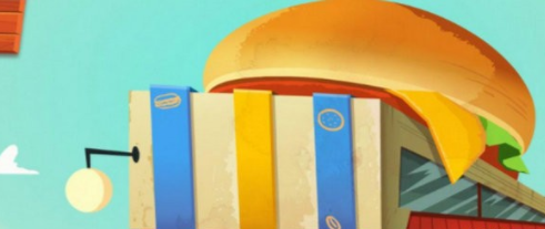 1、独特的美式恶搞漫画风格的人物形象设定,真实的模拟汉堡制作的每一个步骤。