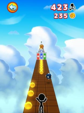 1.控制火柴人进行奔跑甩开后面的怪物并躲避前方出现的障碍物,收集路上的金币!