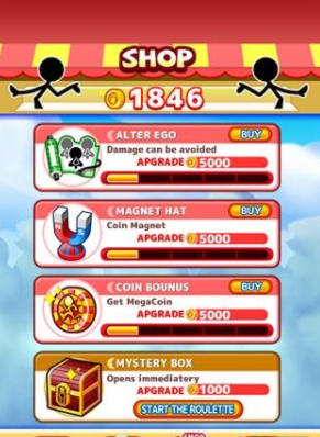 3.收集到的金币可以购买各种强大的道具帮助你越跑越远!还有高难度的挑战等你来体验!
