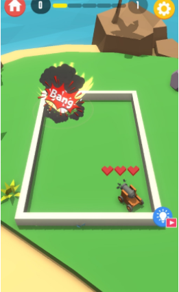 Bang On是一款以3D卡通低模风格大炮和木桶为题材的休闲射击闯关类游戏。游戏的画风很精致,玩法非常的有趣,你拥有一架大炮,你的炮弹还会反弹!但是你只是用来打木桶,这就很可惜了,你要想方设法利用地形区击碎那个该死的木桶。