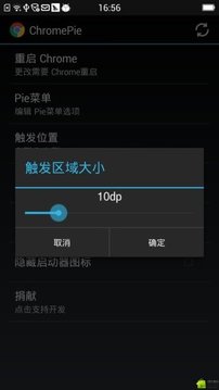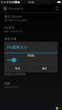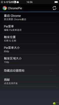 ChromePie是个Xposed扩展,可以将Pie快速控制工具加入至Google Chrome或Google Chrome Beta。可用的功能包括: 后退,前进,刷新,新标签页,新隐身标签页,关闭标签页 加入书签,历史记录,请求桌面模式,页面内查找 加至首页,分享,回到顶部,全屏以及其他功能