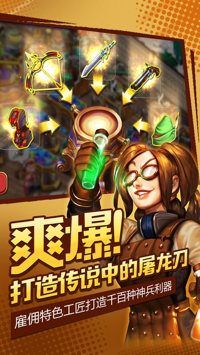 游戏中你需要经营小店的同时派出英雄完成各种史诗任务,收集材料来打造独一无二的神兵利器,还需要不断的收集资源来打造属于你自己的城市,总而言之是一款非常有深度的游戏。