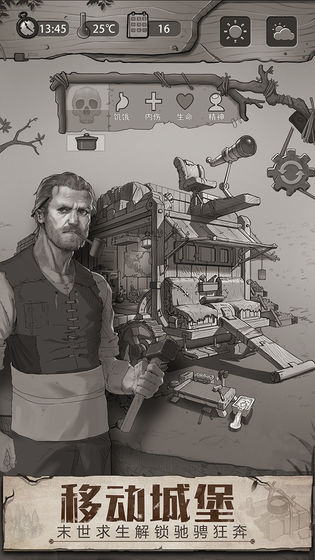 为了生存一路上玩家要控制角色去收集各种物资道具,维持生命、升级房车。