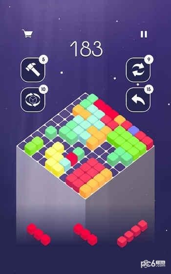 游戏的玩法简单易学,只要拖动不同形状的方块,放置到高台方格,把空缺的位置补全,形成或整行或整列的方块,就会消除。