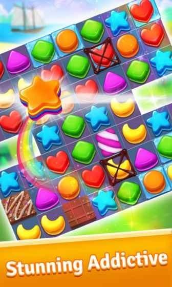 在美味地冒险地图上,互换糖果,赢得惊人的奖励,并清除板块。