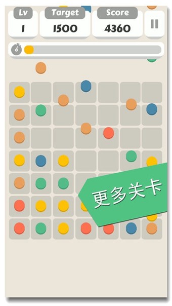 一次连接的点越多,获得的分数就会越高。同时,当一次连接的点的数量超过六个时,会根据点数的不同获得不同功能的道具和技能,充分利用好这些技能,可以有助于你顺利过关。