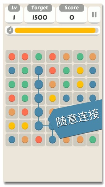 这是一个非常简单,但是又充满挑战性的游戏,连接相同颜色的点,即可将它们消除。