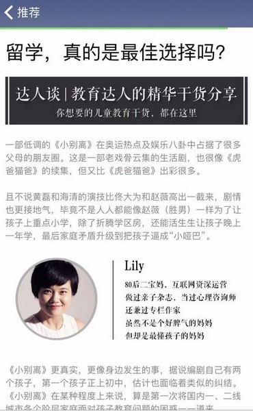 2、教育达人:超过1000+全球教育达人在这里汇聚,给家长们带来了自己的教育理念和方法,总有一款适合你。
