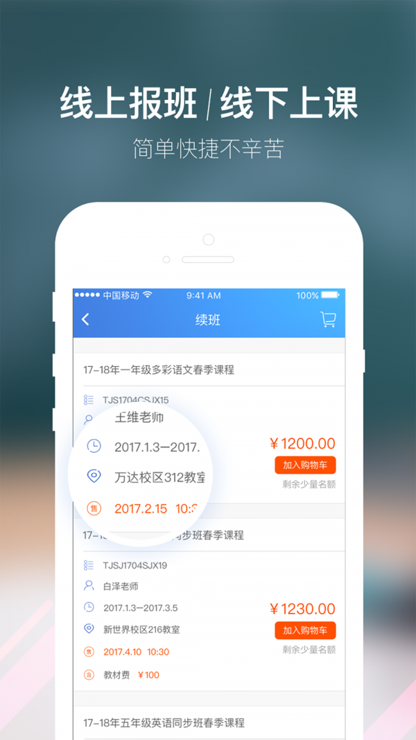 随时随地报名抢课,从此报课不用出门、告别排队。