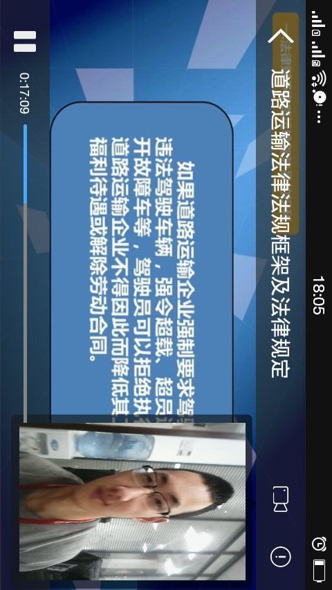 本软件服务对象为取得从业资格证且在岗营运的道路客货运输驾驶员。通过软件可以在线学习《道路客货运输驾驶员继续教育大纲》要求的9个模块的所有内容,具体包括道路运输相关法律、法规,职业道德,职业心理和生理健康,车辆使用,行车危险源辨识与防御性驾驶,应急处置,节能减排等。