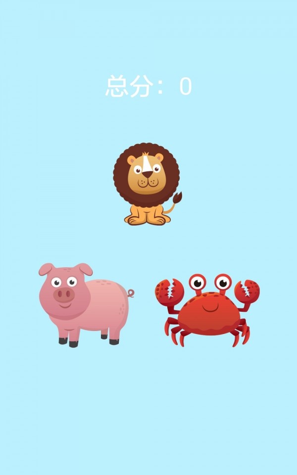 3、分辨动物模式,则随机生成三个动物让宝宝分辨出其中一种,对宝宝的听力、思考力和参与力有很大的训练作用。