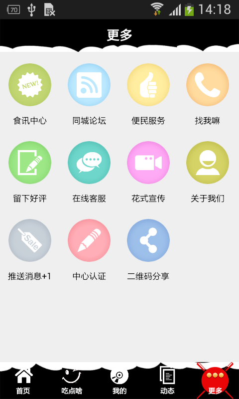【吃点啥】:本应用提供相关各种美食产品分类,方便客户查询购买。