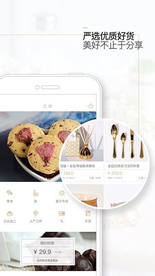7.生活周边。在分类一栏里面,我们可以很细致的发现,除了美食,这里还有很多更精细的类目。比如油盐酱醋、厨创周边、美食书店等,在美食的基础上给我们更加精挑细选的品质生活空间。