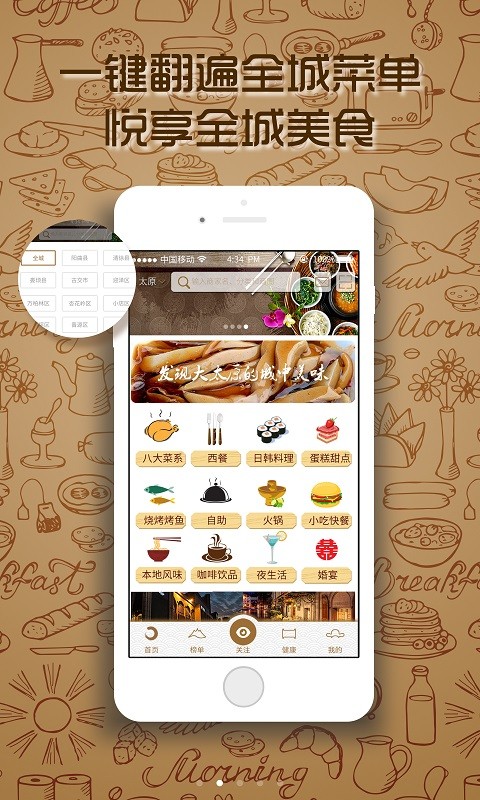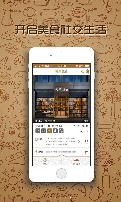 全方位了解餐厅,从外观到装修到厨师能力到餐品菜单到消费水平以及360度环景欣赏。查找早餐,夜宵,24H营业的餐厅。团购、代金卷、储值卡、折扣点菜,折扣买单多种方式供用户自由组合提供最方便的优惠选择。