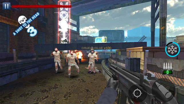 猎杀模式:疯狂的丧尸前仆后继,扑面而来,你需要手持冲锋枪,开启疯狂的杀戮。