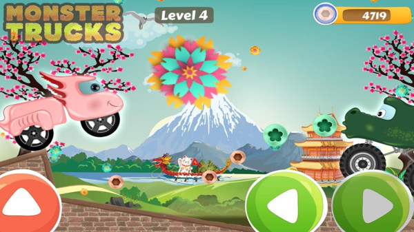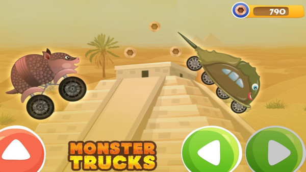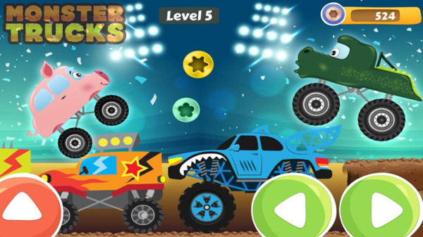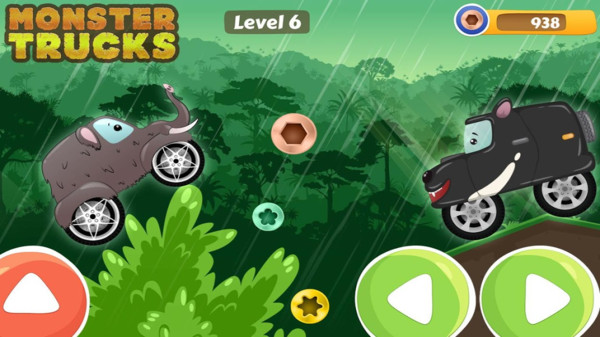 1、7卡通怪物车可供选择,全新的车辆具有可变发动机功率,悬架,轮胎和加速度。