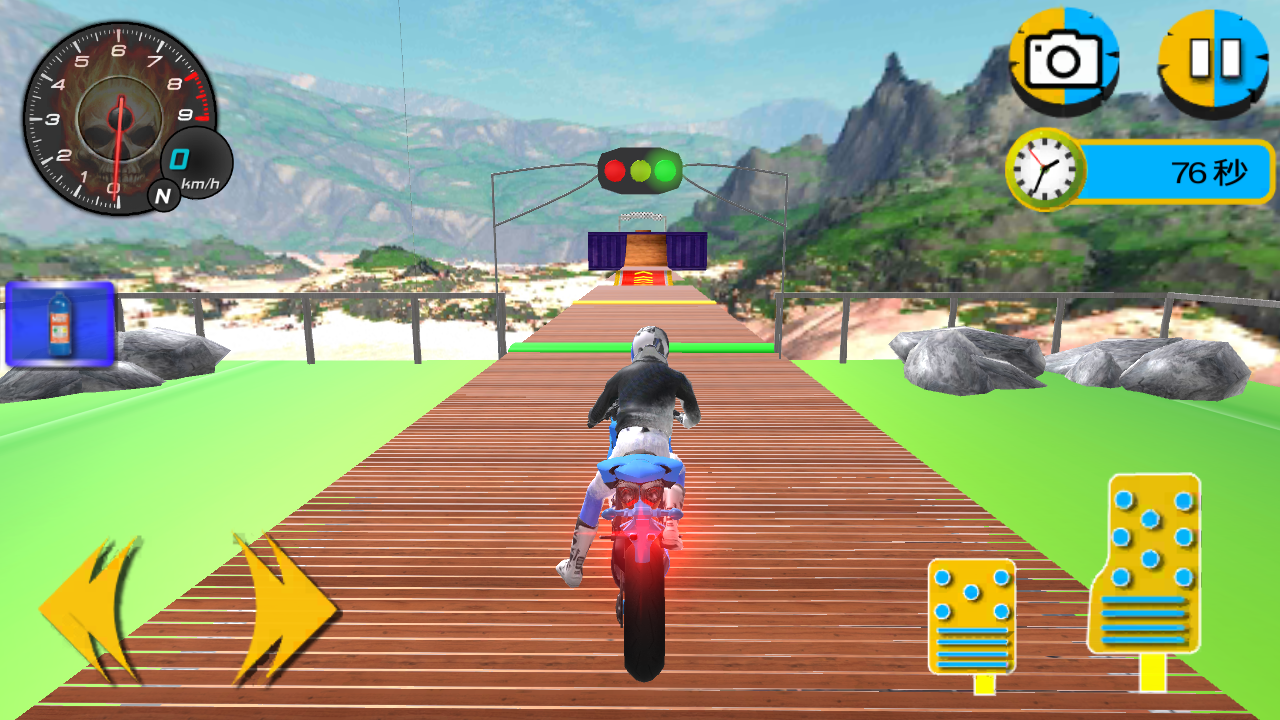 选择摩托车后进入游戏,踩下油门让摩托车加速行驶