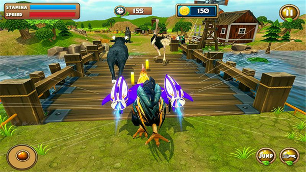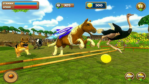 各种动物聚集在一起参加比赛。动物仿真车有各种有趣的场景,包括马、驴、鸡、兔、牛等动物,并控制动物奔跑。