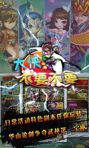 大侠不要不要是一个武侠风格的战斗游戏,玩家将扮演一位英雄,和其他的英雄豪杰一起闯荡江湖,惩奸除恶打boss,这里的英雄角色都是我们所熟悉的,每个角色都有它自己的特色,喜欢就来下载大侠不要不要吧。
