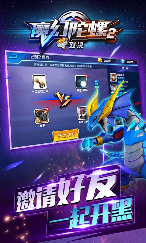 魔幻陀螺2对决是一款根据经典动画所改编的角色扮演类动作游戏,游戏中你将可以选择不同的主角和陀螺进行战斗,挑战不同的关卡赢得奖励,强化和进化你的陀螺,让它变得更加无坚不摧!