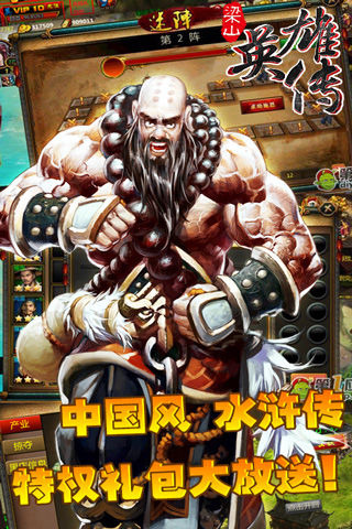 神秘莫测的水浒聚义、刀光剑影的火并战场,都得到最完美的360°无死角全景展现,打击感体现得淋漓尽致,绝招震屏效果格外震撼。1.新增章节第十四章,聚英雄名扬天下,一战到底绝对让你High的喘不过气;2.新增阵法功能,寻觅阵里乾坤,隐藏属性,神鬼莫测!3.新增兵法功能,撸得兵法卷轴将助你出奇制胜;4.新增祈福功能,神将之力、天命丹等无限道具,劲爆双属性纹身、500元宝代金券等等绝世物品等你来祈福;5.新增155级套装,屌炸天装备助超凡战力加成;