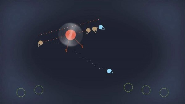游戏里每一关的目标就是要将蓝色的水滴状子弹射进圆环中