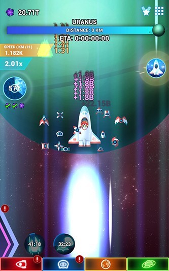 玩家通过疯狂点击来获取资源,用来升级飞船以及建造有用的机器助手。