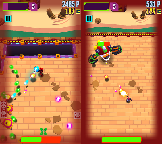 《疯狂射手》在画面上延续了 BulkyPix 一贯特点:轻松休闲的卡通风格辅以各具特点的人设,让整个游戏给人的第一印象相当的个性,而与此同时,丰富的色彩与炫目的攻击特效也在一定程度上满足了一众“颜值爱好者”的要求。不得不说,游戏在画面上表现的还是相当不错的。至于音乐方面,满满街机风的电音在游戏当中“肆意流淌”旋律上的变化也与本作的游戏节奏相适应,有着很强的代入感。