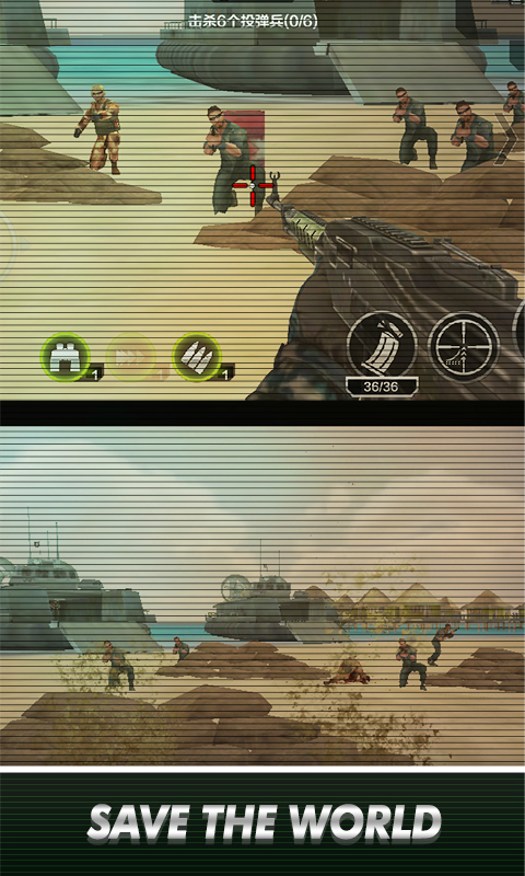 以反恐为题材的射击游戏,游戏武器系统以及装备都非常丰富,能让你玩个爽快。在不同的场景关卡中阻杀各种敌人。众多的难度关卡、丰富的武器装备、爽快的击杀快感,带您走进狙击者的世界。