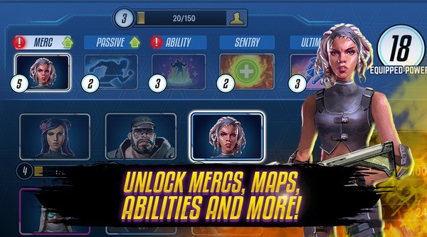 升级雇佣兵,能力,和哨兵,令人难以置信的深度,游戏策略。