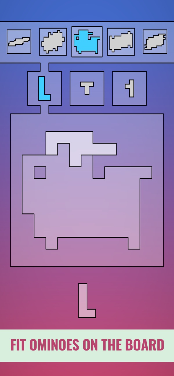 3、目标很简单,使用不同类型的ominooes填充生成的形状三次。