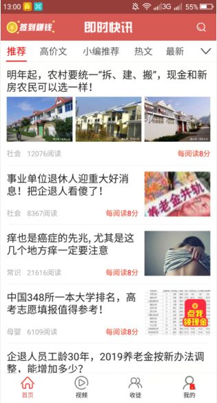 即时快讯是一款用来看资讯的软件,在这你可以通过阅读资讯来轻松赚钱,我们还准备了大量的赚钱任务,完成任务即可获得相应的报酬。文章每天都会及时更新,所以你的收益也会是没有限制的。有兴趣的小伙伴来点击安软市场下载吧。