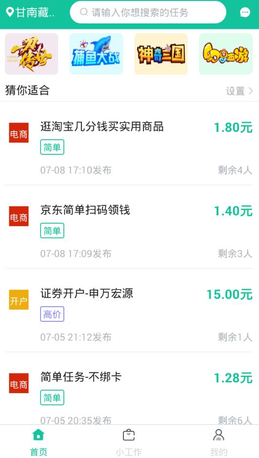 全民小工作是一款可以让用户快速的找到各种工作兼职的软件,在这里会有各种类型的奖励发放,用户可以随意的将自己的空余时间安排出去,让你可以快速的赚钱。