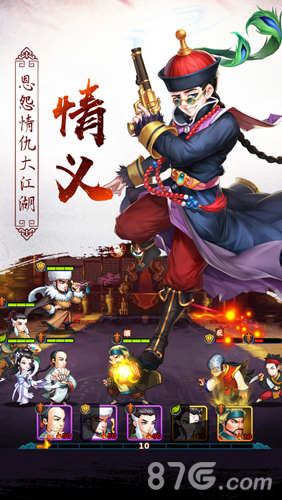 江湖名侠悉数登场,酒馆招募与群侠结义共闯江湖,各种武学神功千变万化,战斗阵型即时变换,百余侠客尽显江湖奇缘,激活缘分飙升战力,百余种武学BUFF相生相克,策略战斗指尖胜负。