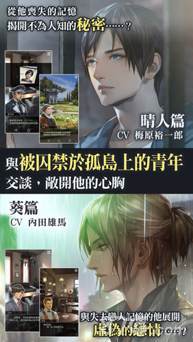 被囚禁的掌心安卓版是一款由卡普空制作的女性向恋爱手游,游戏中玩家身在一个孤岛之上,离开孤岛的条件就是成为被囚禁在收容所并丧失记忆的青年晴人的辅导员并且协助找回他失去的记忆。借由会面与他直接交谈,在两人独处的空间进行一对一的互动交流,透过如同会面室玻璃的手机屏幕碰触他、感受他的体温,同时可用连天软件和他聊天,传达玩家最真实的心意拉近彼此距离,以及监视来了解他在房间的一举一动。