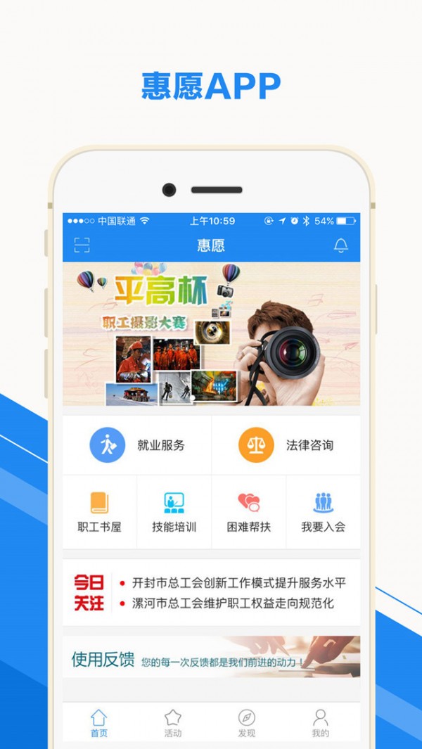 豫工惠app是河南省总工会推出的服务于广大职工的生活服务及帮扶平台,为河南省职工提供就业服务和法律咨询服务,全方位满足职工需求。