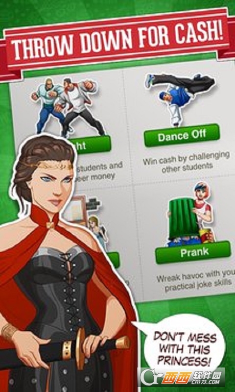 在这个好玩的安卓版手游中,你可以升级你的宿舍,并获得一个新的室友。每当有一个舞蹈停止时,都会有一个搞怪的恶作剧,在大学里,每场战斗让你更接近最冷静和受欢迎的人。你还可以开始进行一段感情,并找到一个男朋友或女朋友。喜欢的玩家们快来下载玩耍吧!