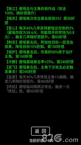 1、应部分玩家的要求,本次更新增加两个隐藏结局;当然,既然是隐藏结局,那么要求也比较高啦。第一个隐藏结局条件是,在拥有晓月的情况下通关游戏,并且选择不回家;第二个是在不能拥有晓月的情况下通关,并且碧瑶好感999以上,同样需选择不回家。