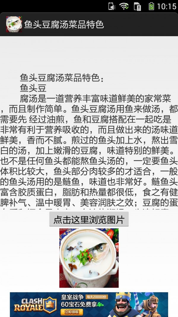 《鱼头豆腐汤的做法图文》APP手机应用内容介绍:你可以通过手机应用查阅鱼头豆腐汤菜品特色、鱼头豆腐汤鱼类选择、鱼头豆腐汤做法。鱼头豆腐汤鱼类选择:鱼头豆腐汤中的鱼头一般选用鲢鱼头或草鱼头较好,豆腐用卤水豆腐,并且鱼头洗净切块后用大油(猪油)和葱姜煎一下加入热水烧开汤成浓白色再加入豆腐和调料,这样汤鲜味美,营养丰富......
