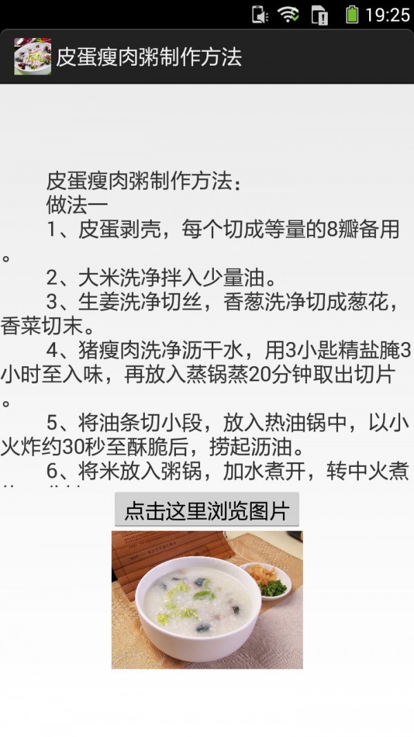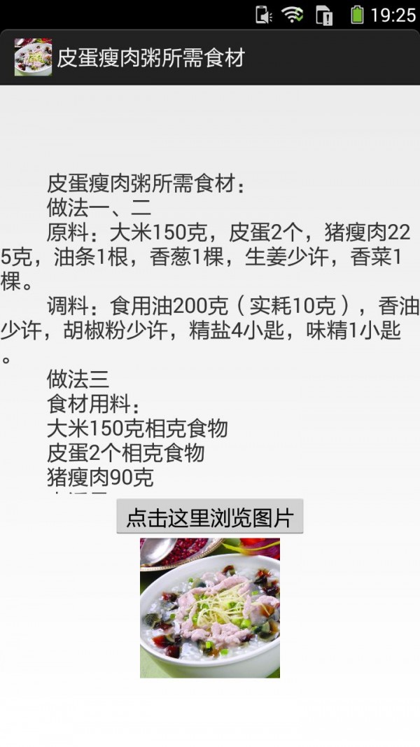 皮蛋瘦肉粥的做法图文是一款菜谱类的软件,通过皮蛋瘦肉粥的做法图文你可以方便的学习皮蛋瘦肉粥的做法,感兴趣的朋友可以多多了解一下。