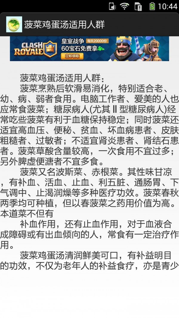 《菠菜鸡蛋汤的做法图文》APP手机应用内容介绍:你可以通过手机应用查阅菠菜鸡蛋汤价值、菠菜鸡蛋汤适用人群。菠菜鸡蛋汤适用人群:菠菜烹熟后软滑易消化,特别适合老、幼、病、弱者食用。电脑工作者、爱美的人也应常食菠菜;糖尿病人补血作用,还有止血作用,对于血液合成障碍或有出血倾向的人,常食有一定治疗作用。菠菜鸡蛋汤清润鲜美可口,有补益明目的功效,不仅为老年人的补益食疗,亦是青少年的有益汤水......