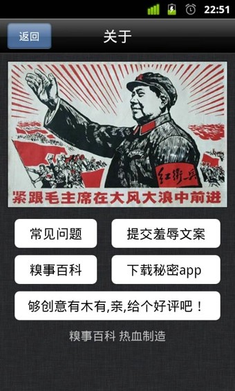 起床,发围脖求羞辱!据世界卫生组织统计,赖床综合症是二十一世纪三大疾病之首,患病率占世界人口87.53%,医学界对此疾病一直束手无策。 起床大作战是一款划时代的产品,海量的临床试验表明,起床大作战可以有效提高起床率300%,安全无副作用。它的工作原理非常简单,如果赖床,就自动发送一条微博帮您求羞辱。