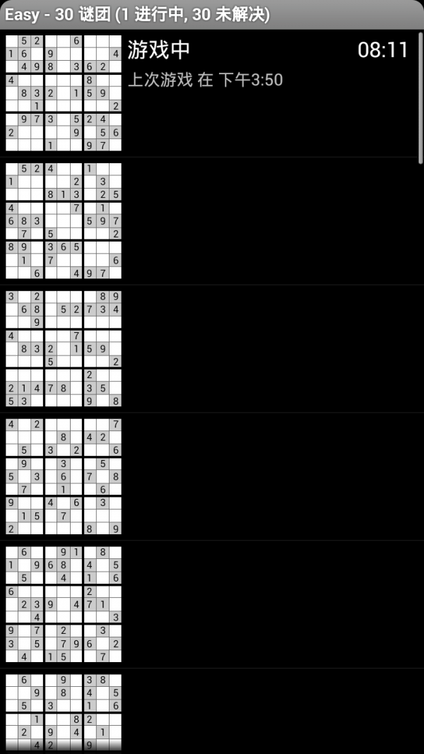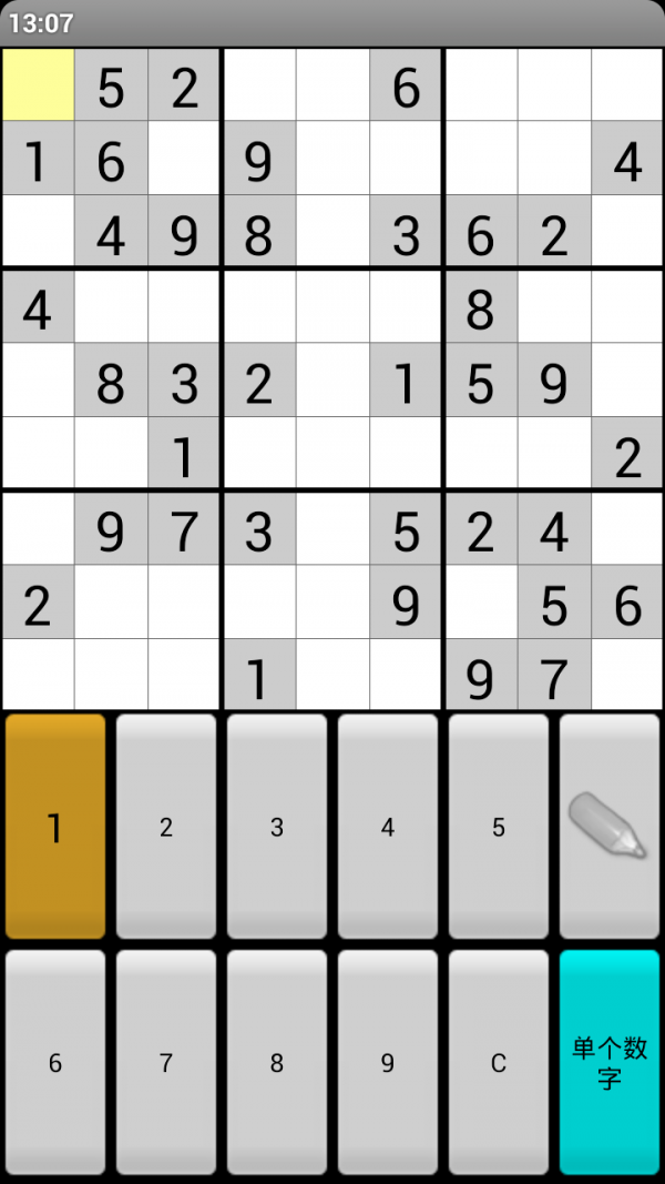 趣味数独:数独盘面是个九宫,每一宫又分为九个小格。在这八十一格中给出一定的已知数字和解题条件,利用逻辑和推理,在其他的空格上填入1-9的数字。使1-9每个数字在每一行、每一列和每一宫中都只出现一次。